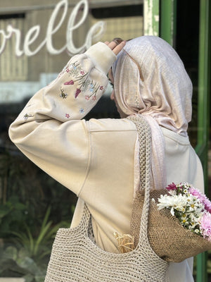 “Halla” is the first piece in our collection, an oversized crewneck sweatshirt designed with comfort, elegance, and modesty in mind. The name هلا (Halla), meaning “welcome” in Arabic, symbolizes warmth, hospitality, and the gentle spirit of a new day.