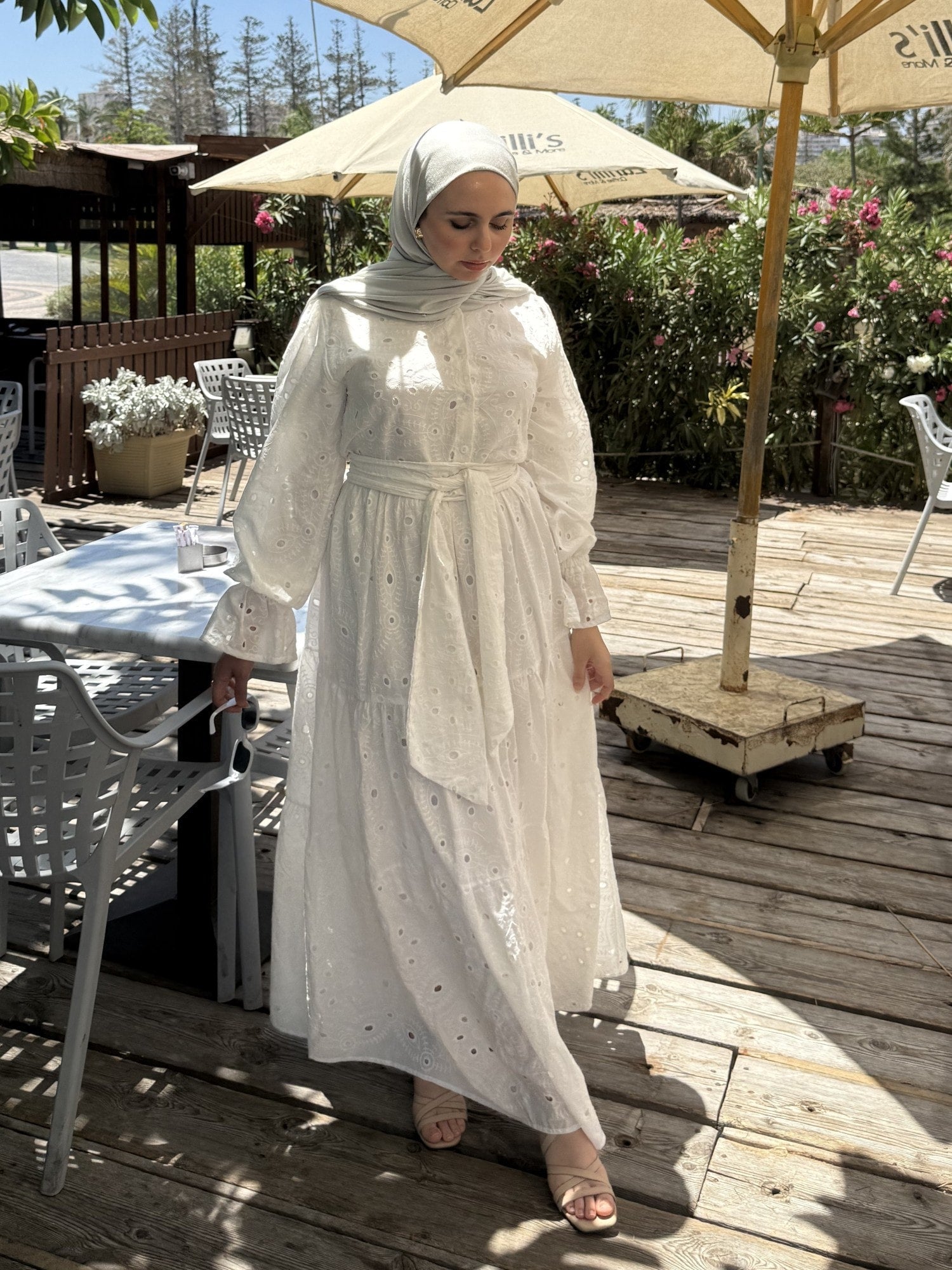 “ياسمين” is a delicate lace dress that captures the essence of grace, softness, and timeless femininity.
