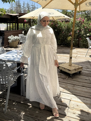 This set includes a lace outer dress, a basic under dress, and a matching belt, all designed to create a refined, modest silhouette that flows effortlessly with your movement.